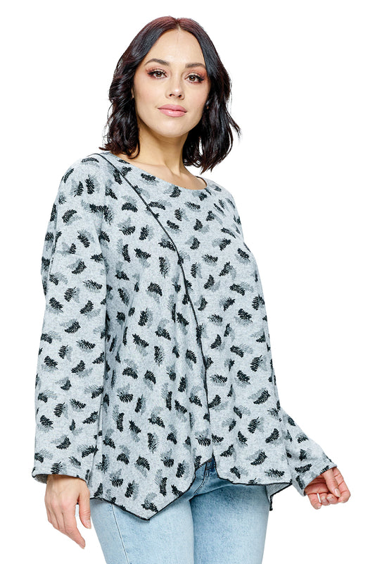 Top Leaf Print Edge Stich