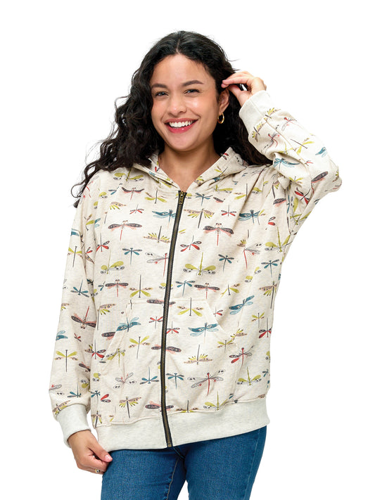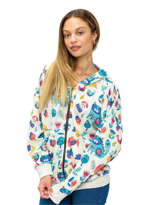 Zip-up Hoodie Whimsical Animals & Floral Print
