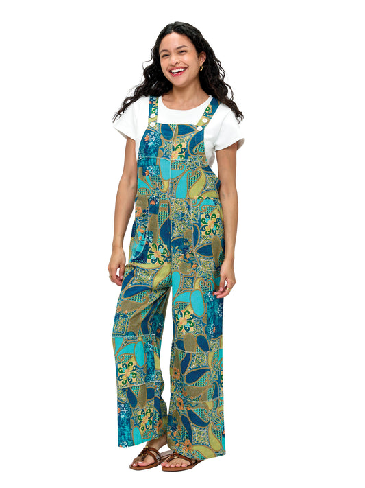 Overall Boho Vibrant Floral Patchwork