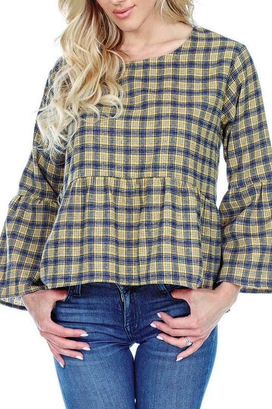 Top Loose Fit Chekered Side Slits Tiny Flowers