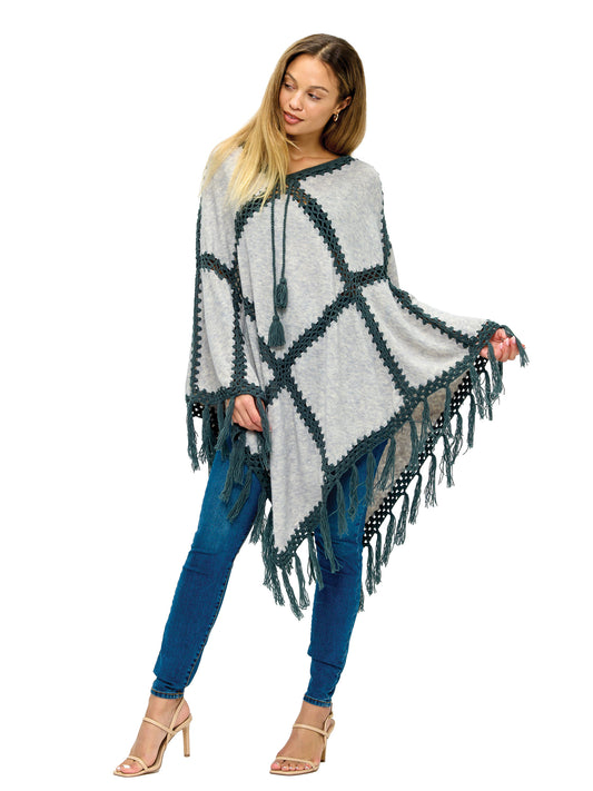 Poncho Patchwork Bohemian Vibe Crochet Details
