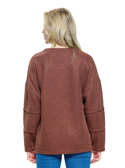 Cardigan Loose Fit Handstitched Accents Ribbed