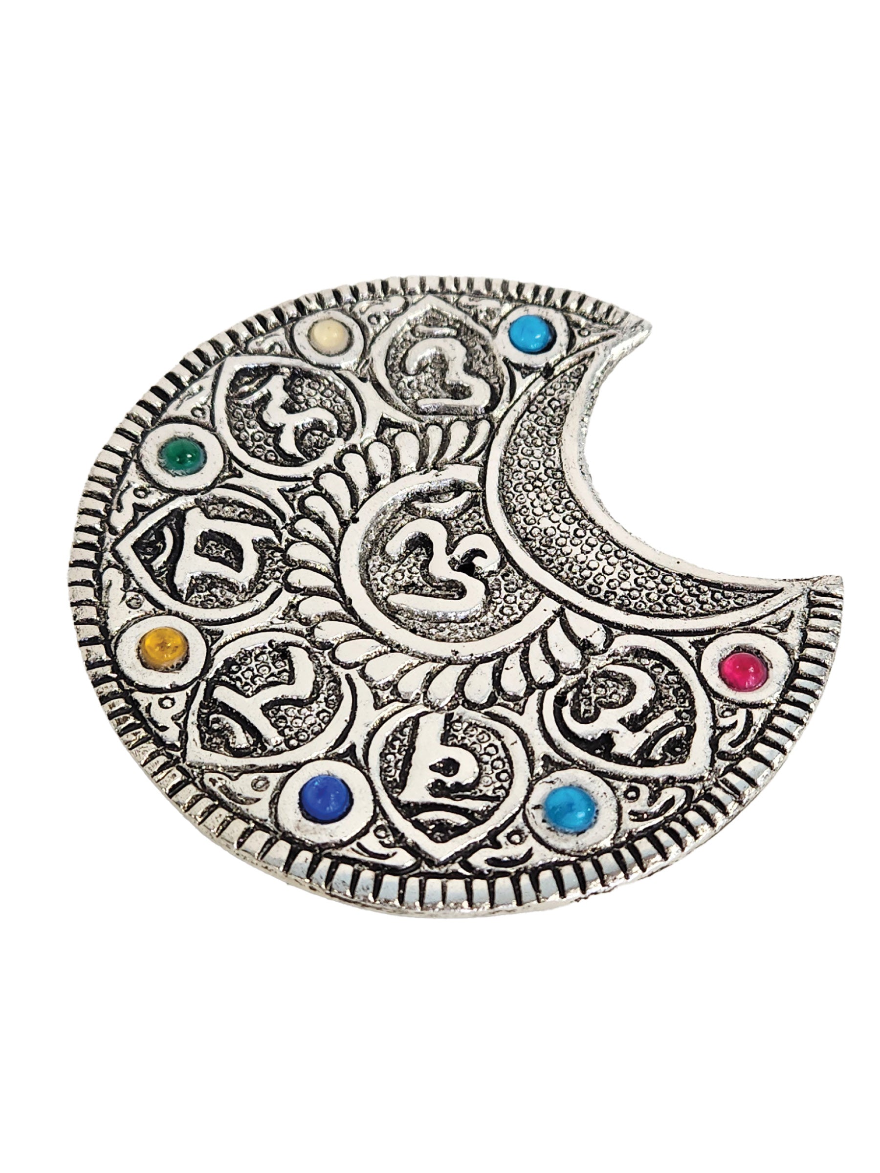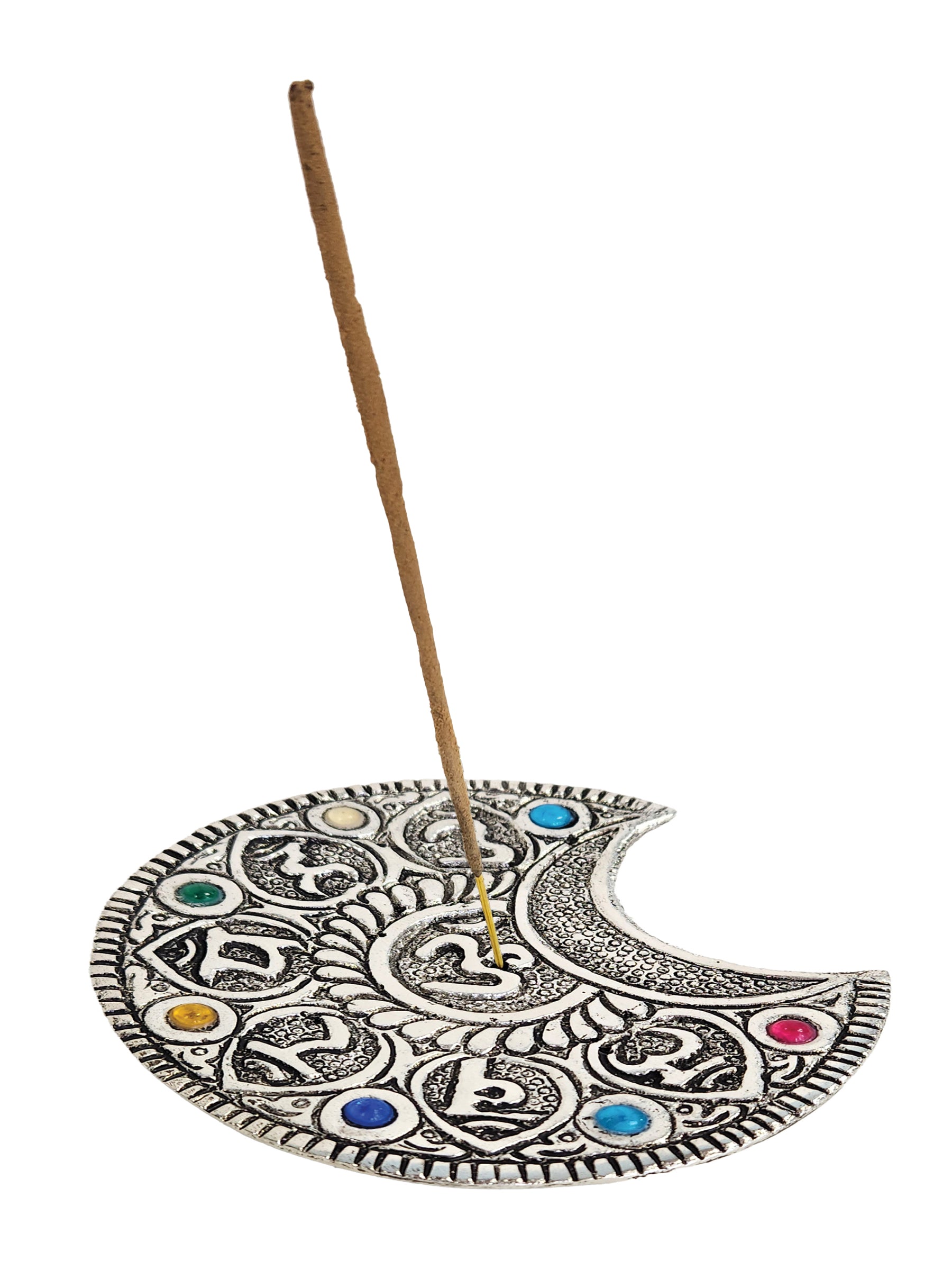 The burner showcases a beautifully carved Om symbol with an antiqued finish. This incense holder makes a thoughtful and meaningful gift option for any occasion.