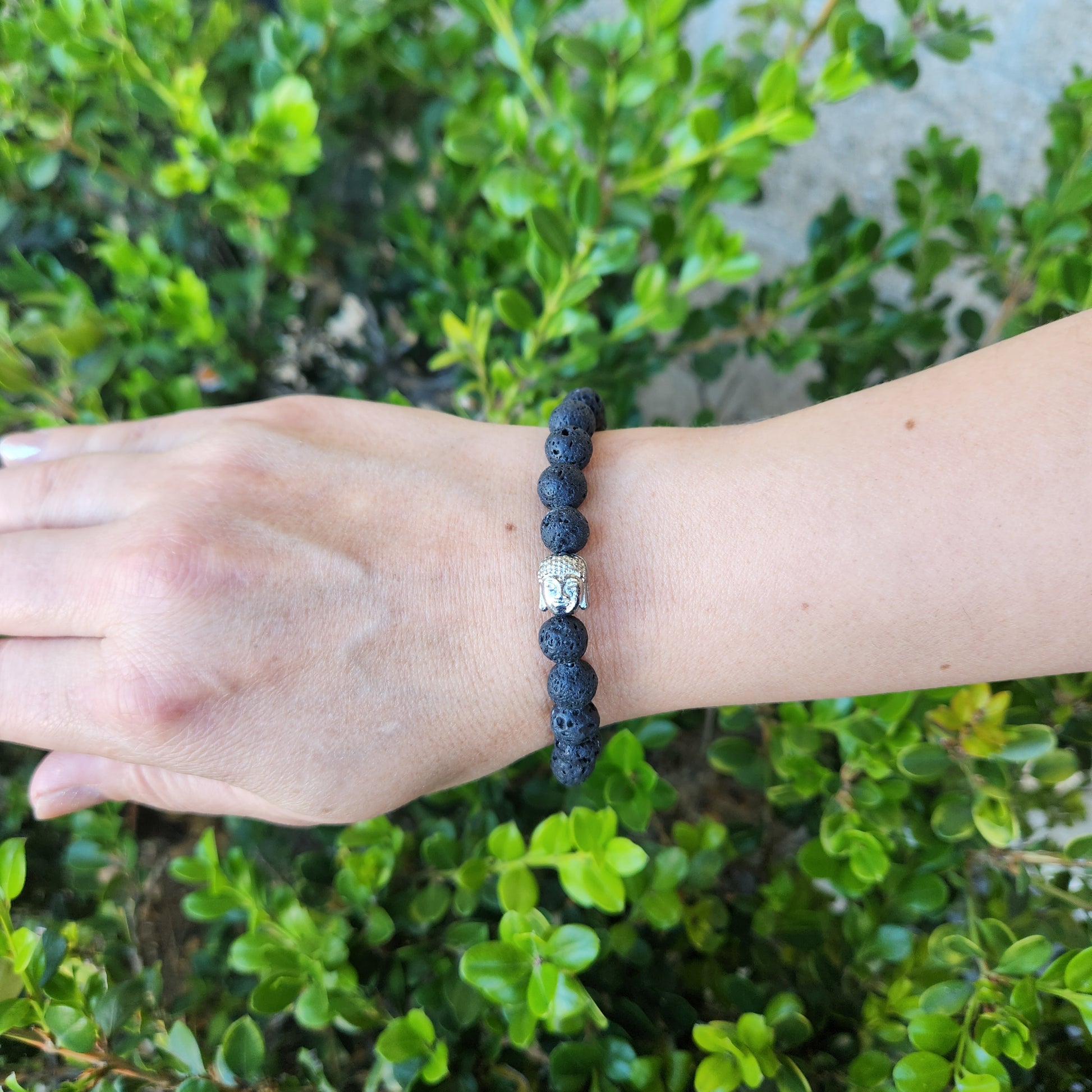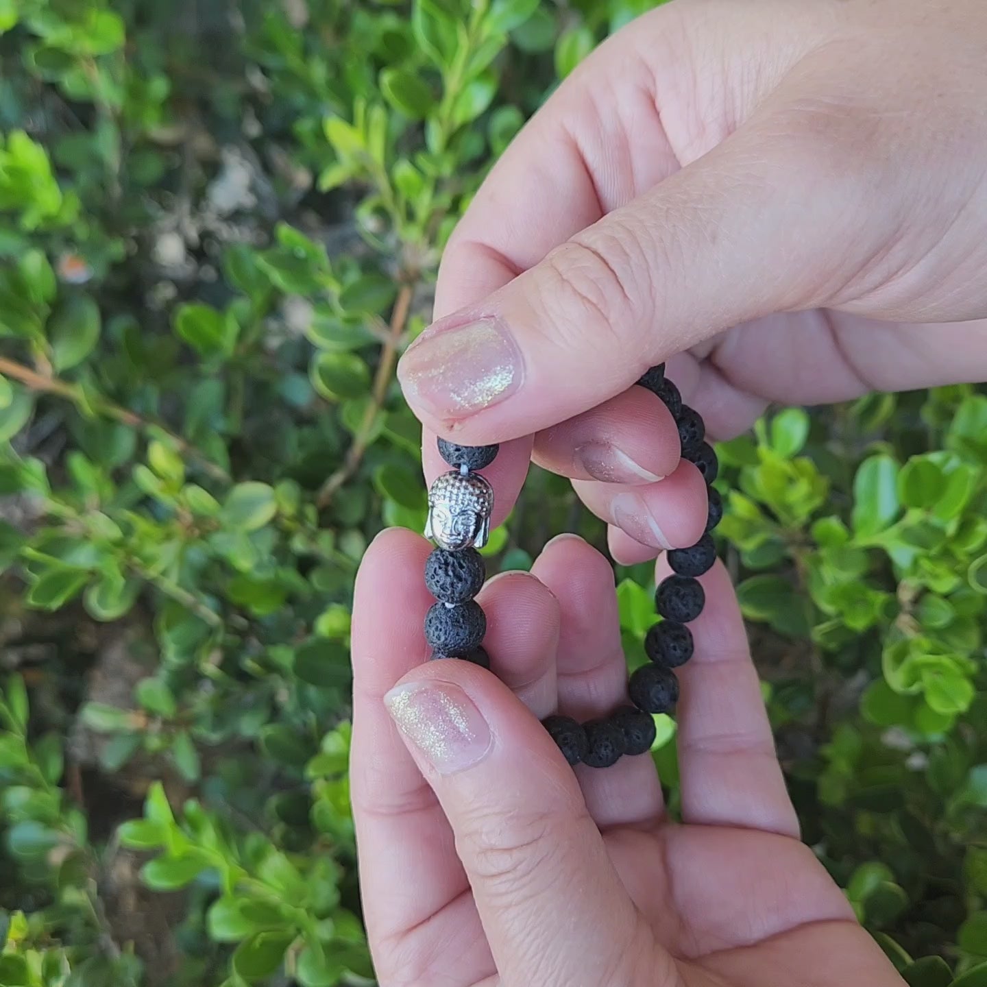 Item : BT125Beaded Bracelet Lava Stone Buddha Charm