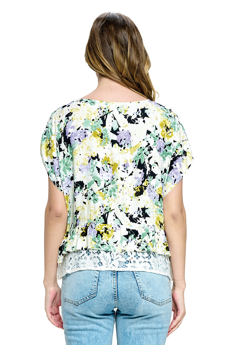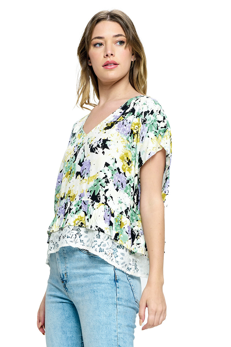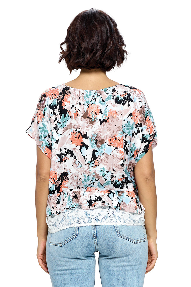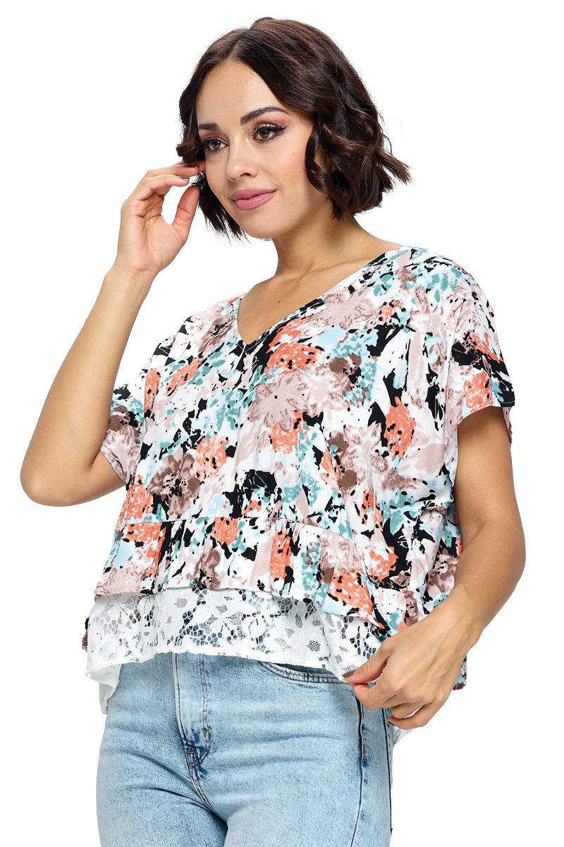 Item : 22194Blouse Casual Floral Ruffled Lace