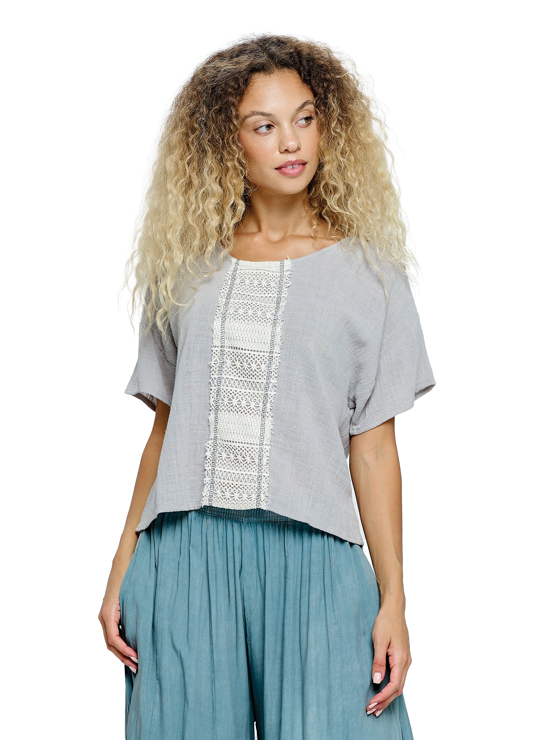 Boho Top Loose Fit Lace Detail