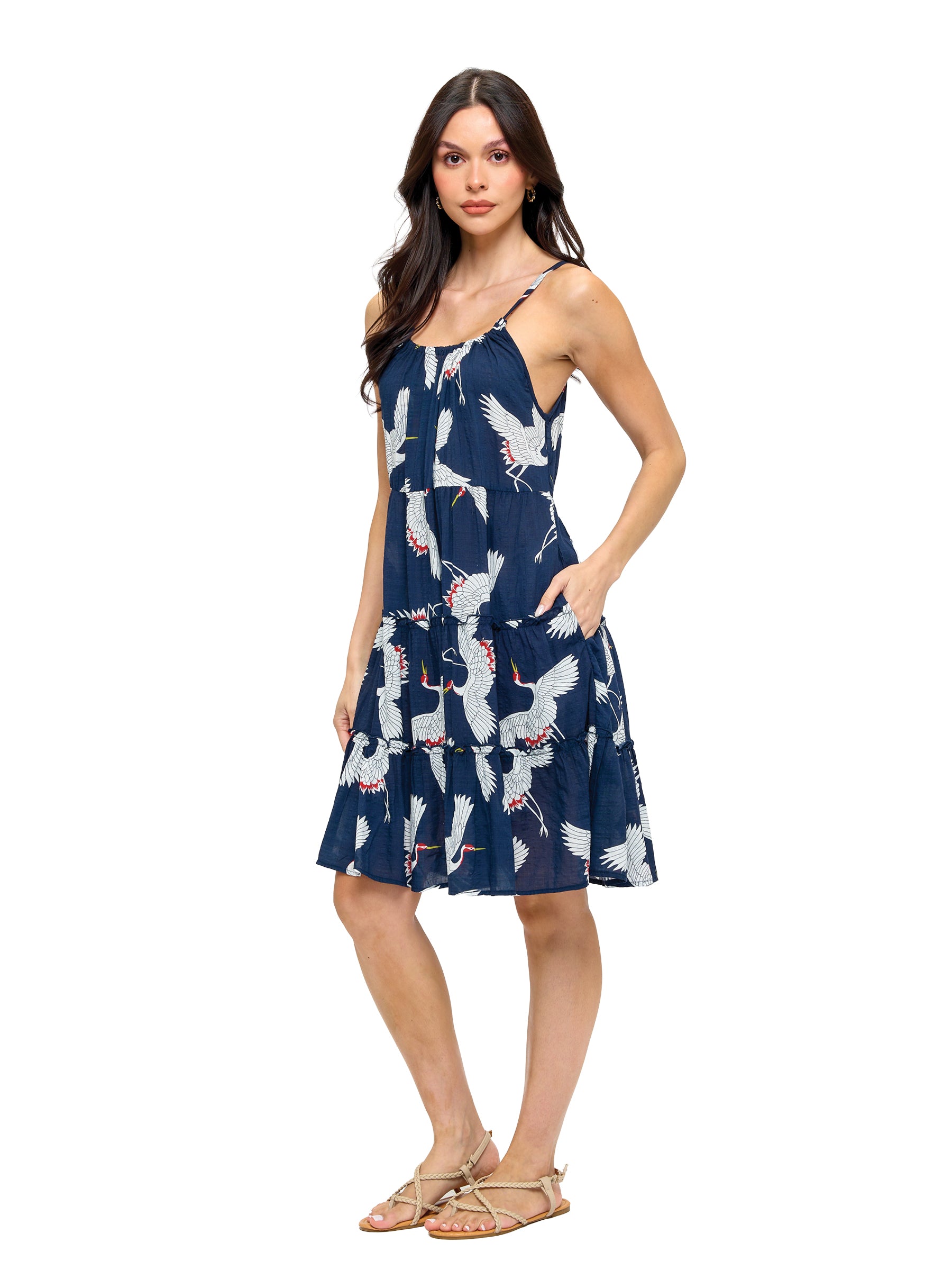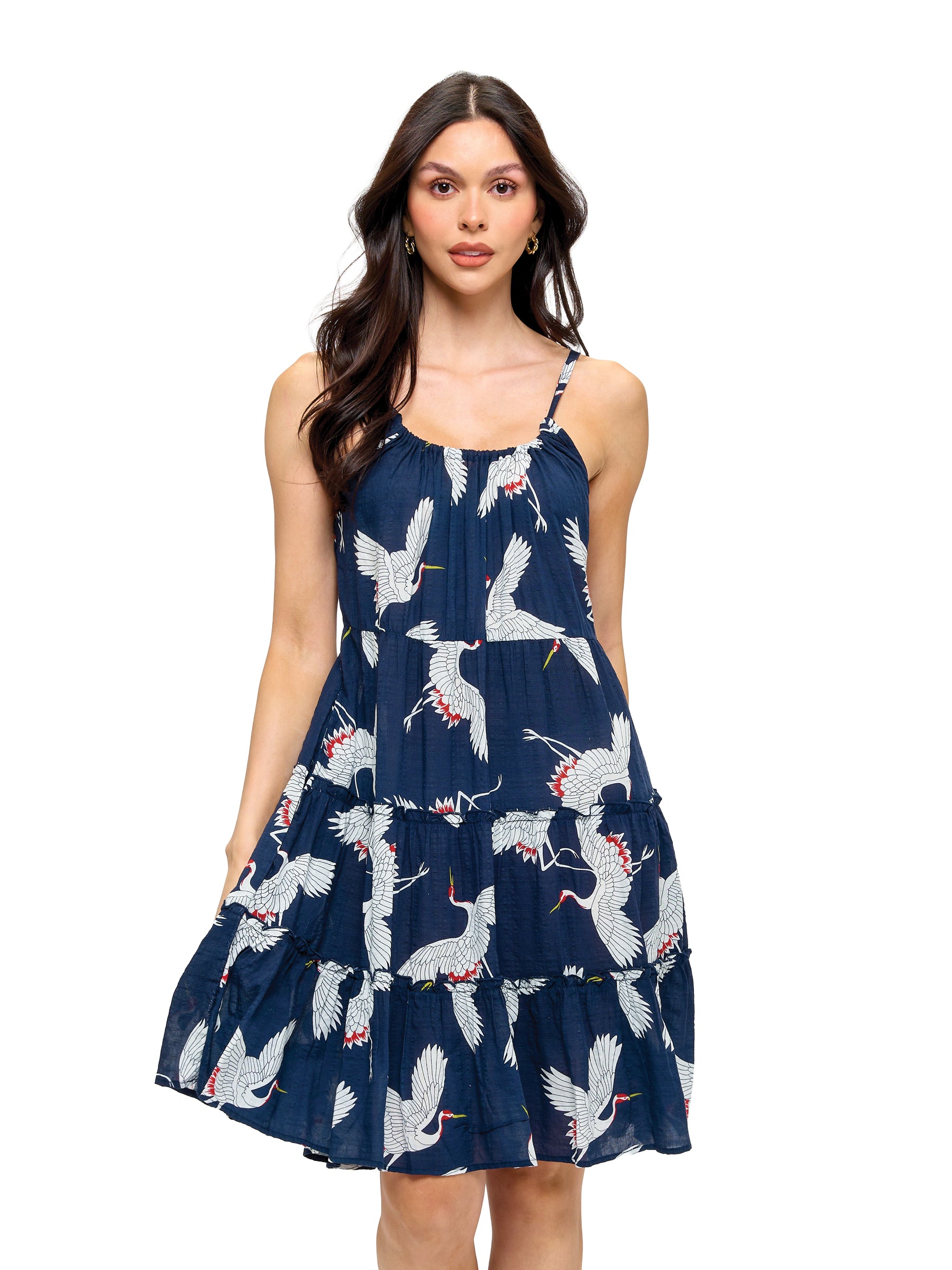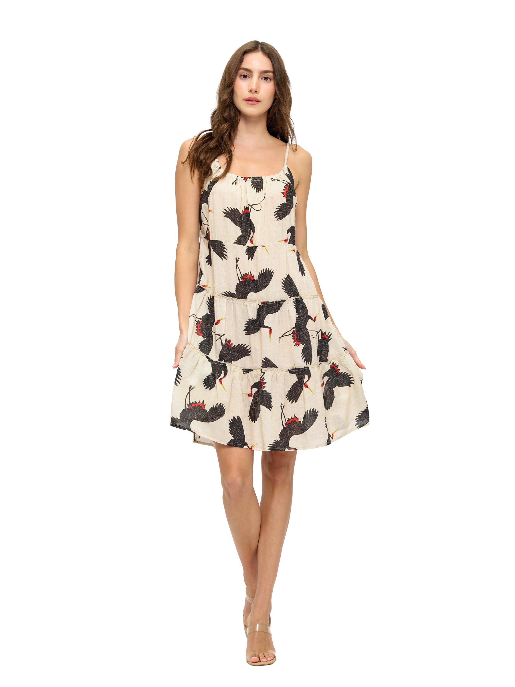 Item : 26302Breezy Ruffled Crane Print Dress