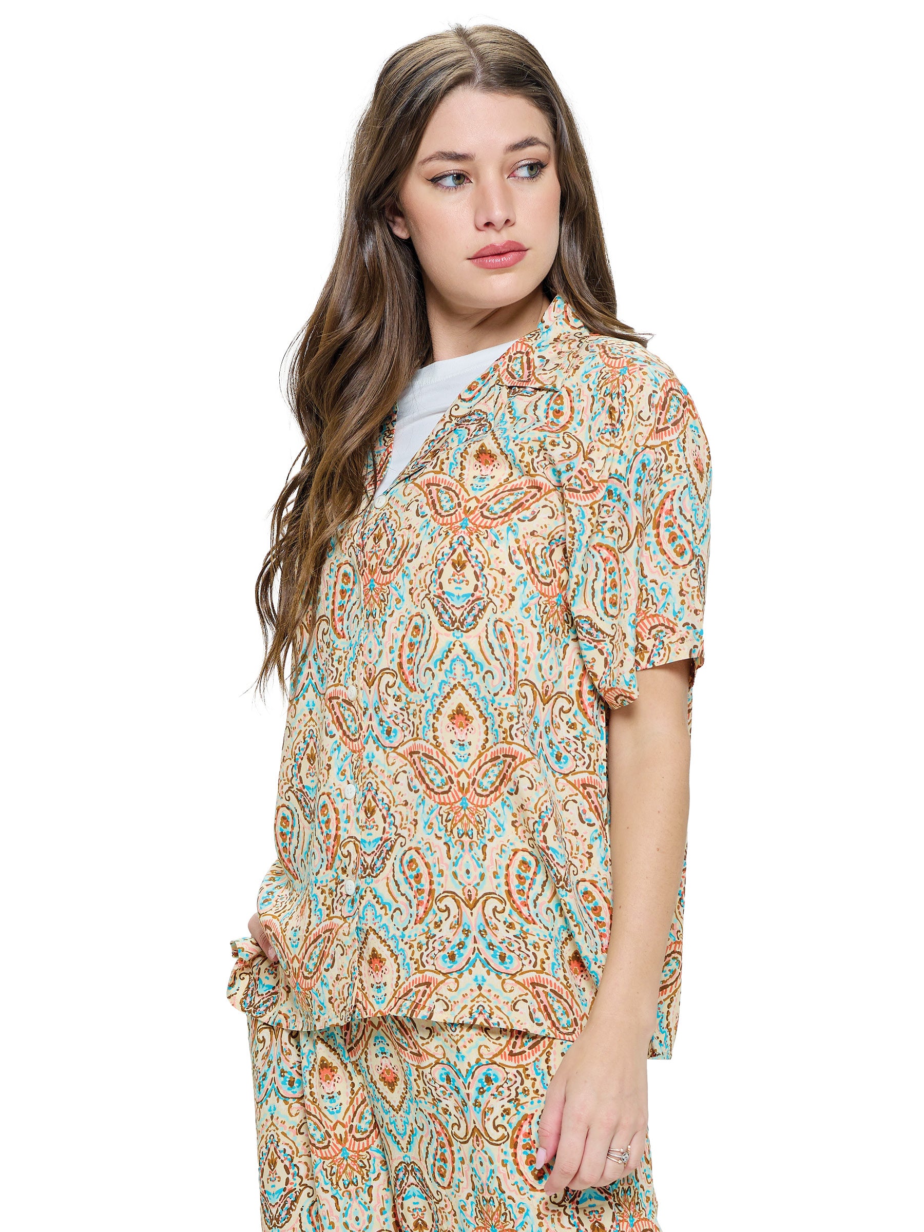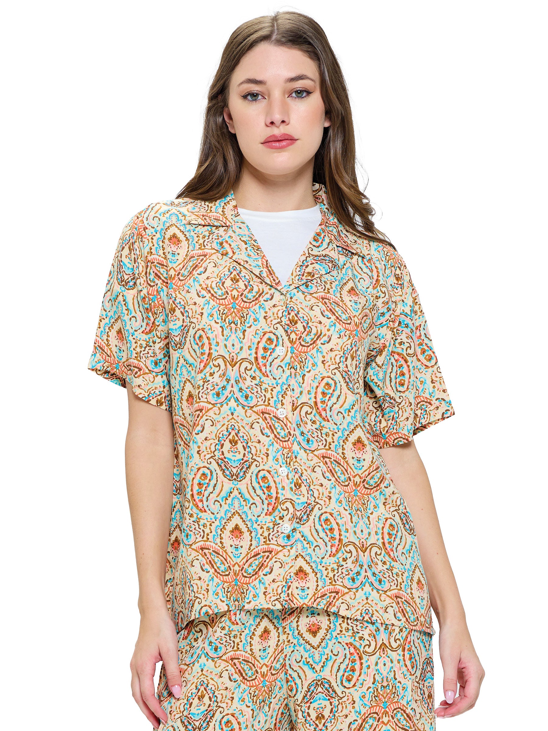 Button up Blouse Paisley Print Multi