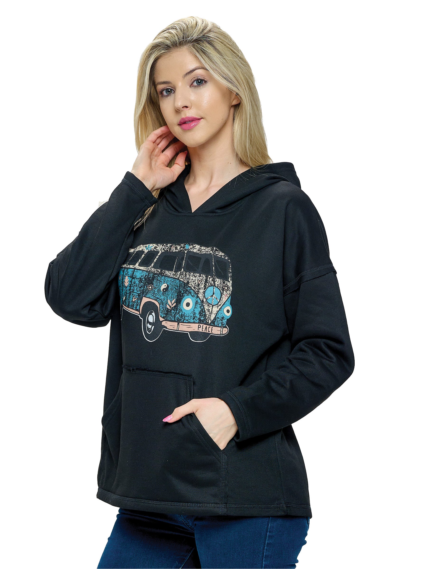 Item : 24633Hoodie Boho Van Life Peace Love Print