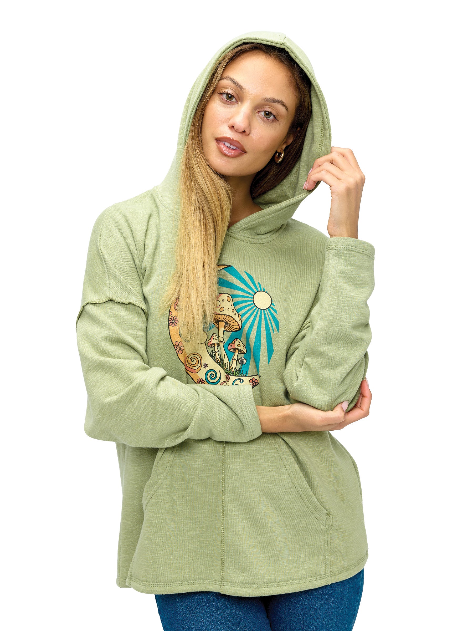 Item : 25655Hoodie Vibrant Celestial Moon Mushroom Peace Print