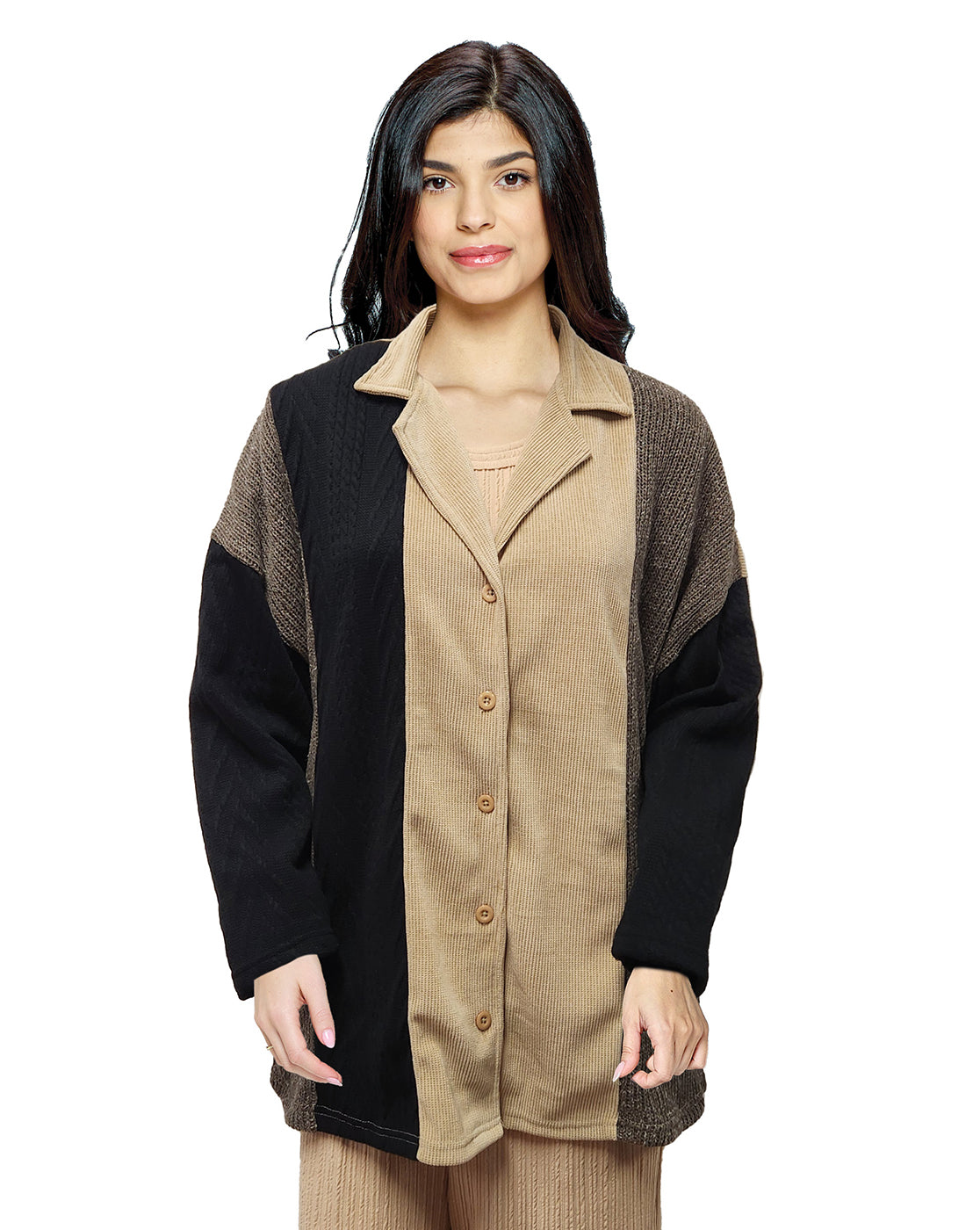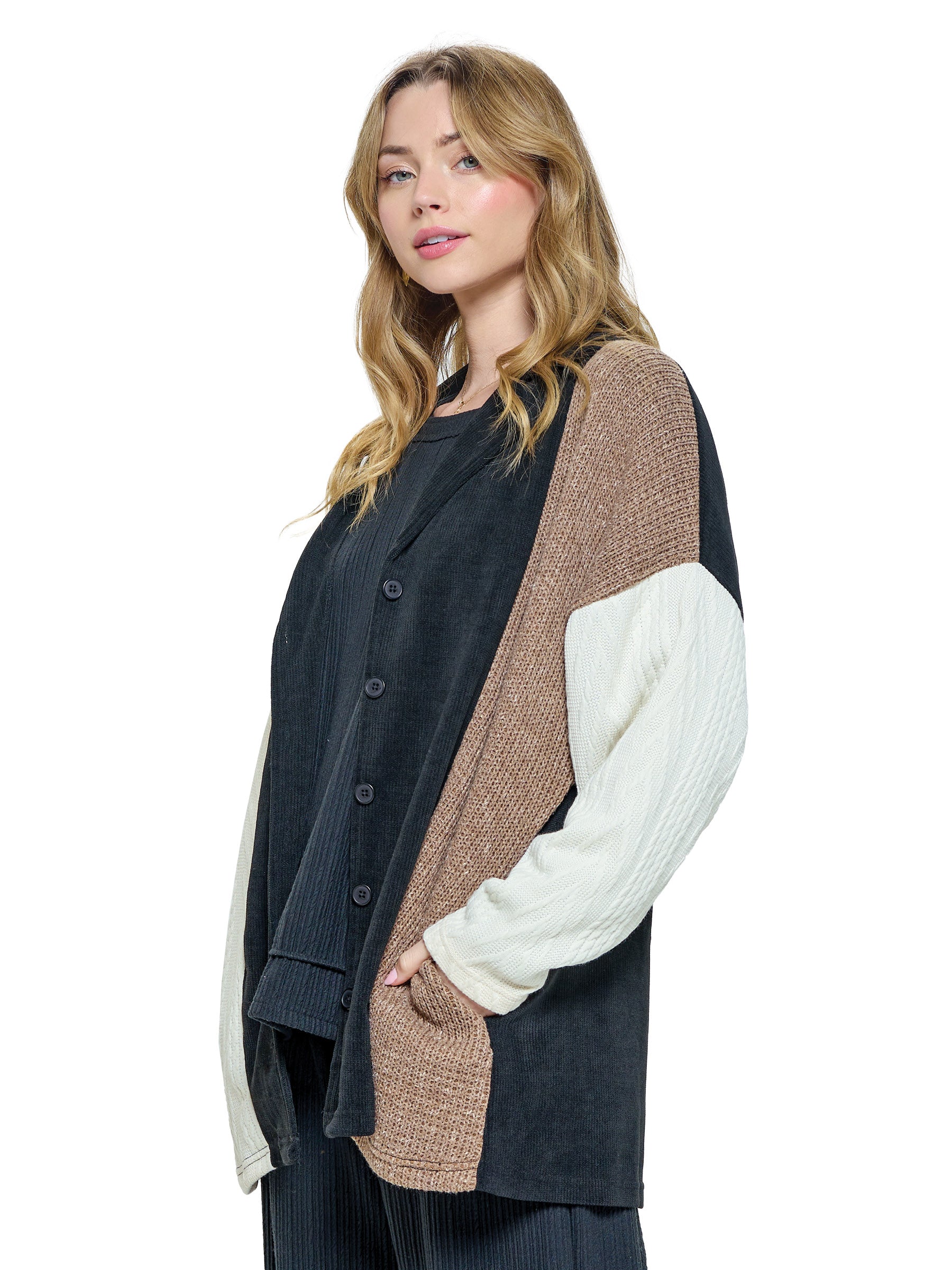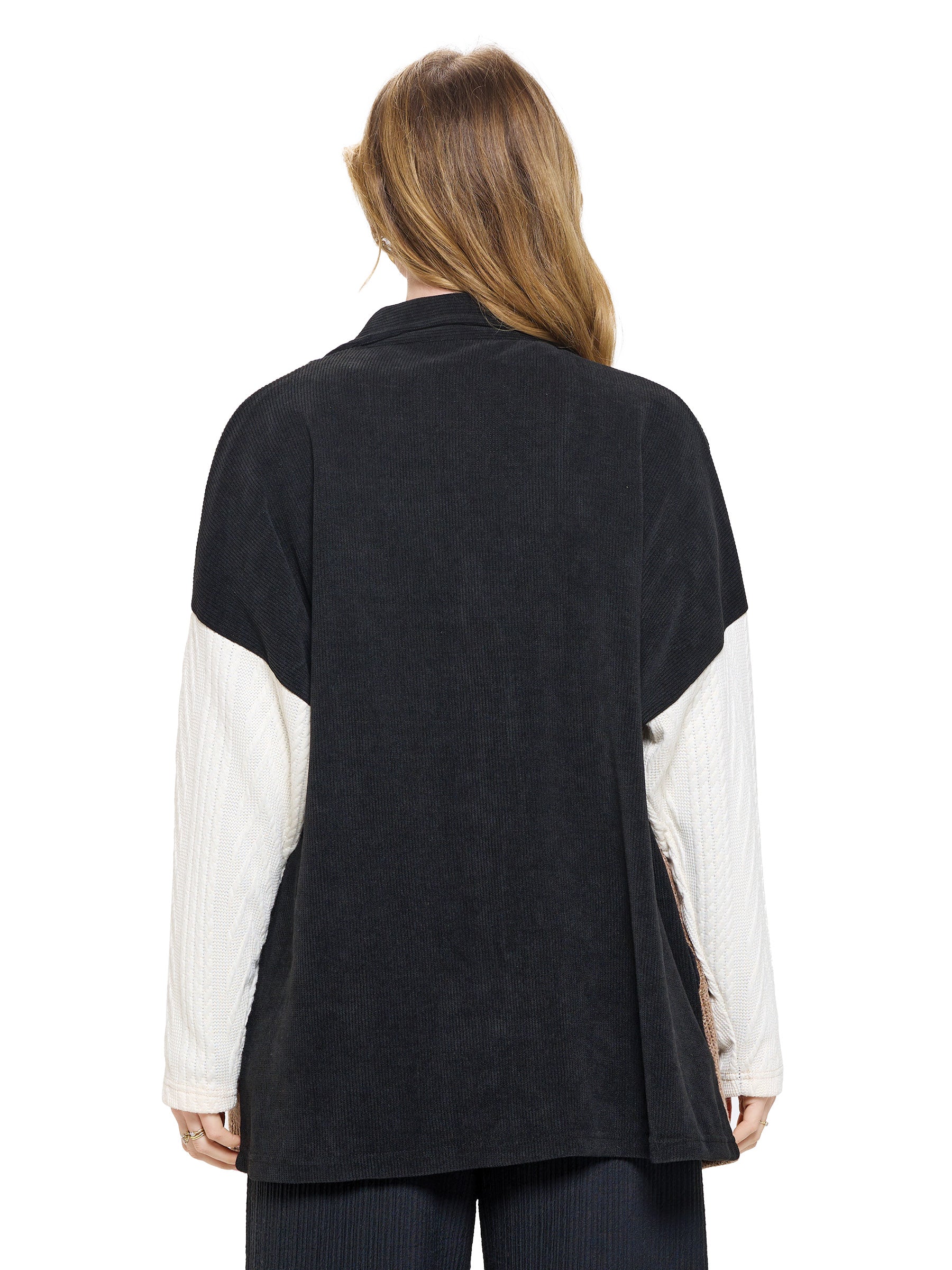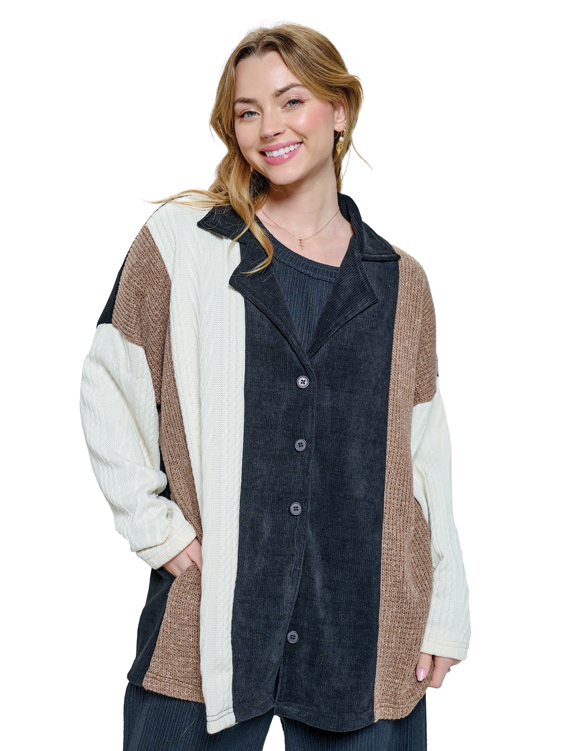 Item : 24620Jacket Cozy Chic Patchwork Ribbed Colorblock