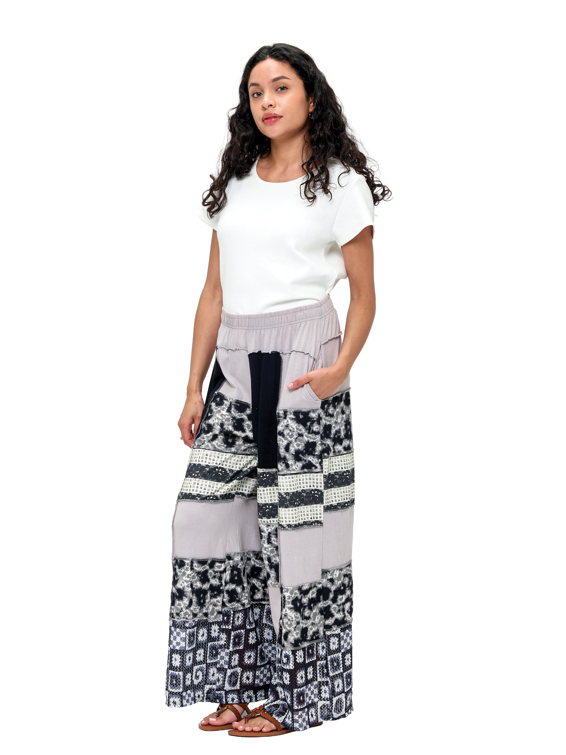 Item : 25671Palazzo Pants Boho Patchwork Colorblock