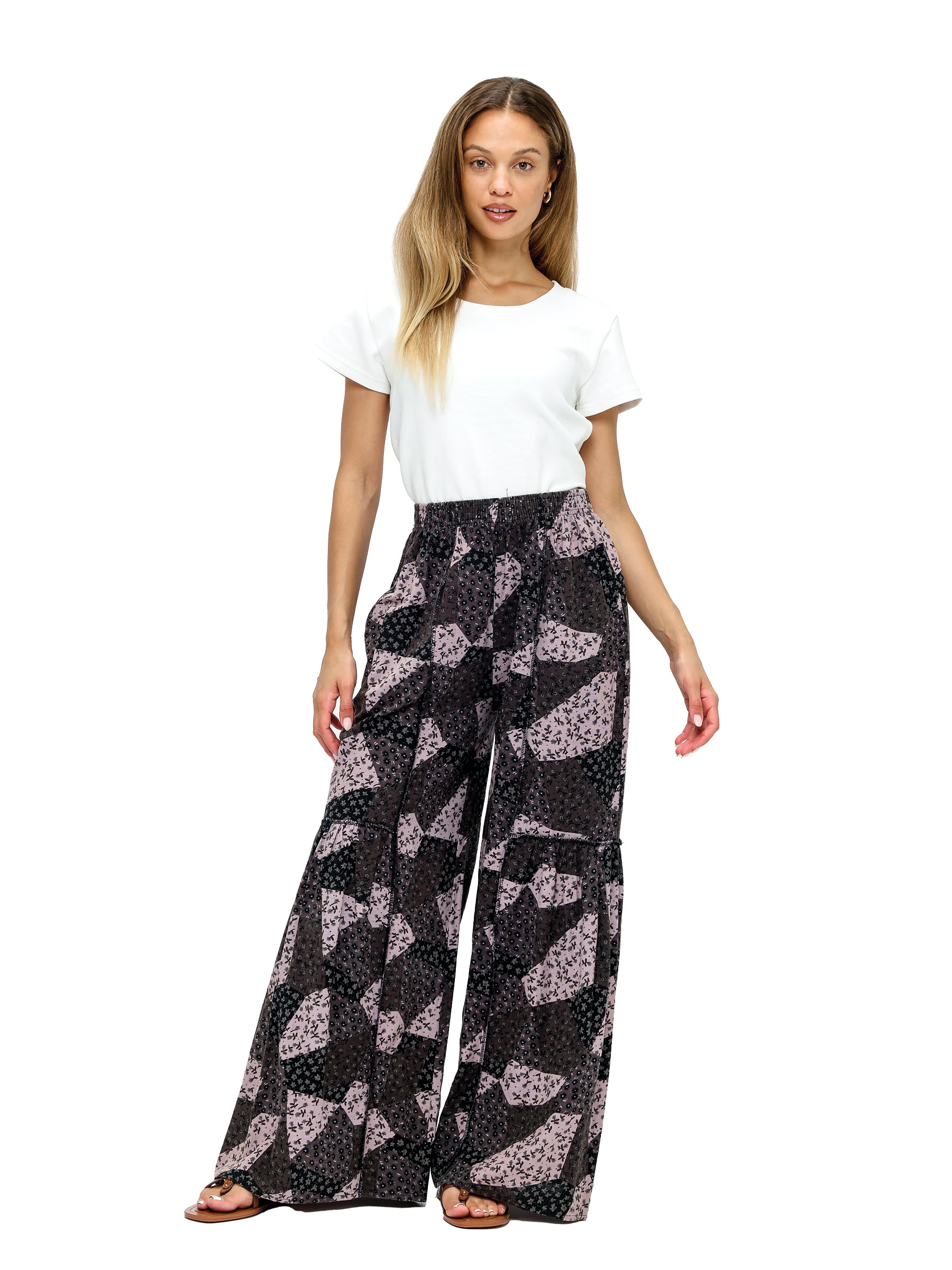 Item : 25658Palazzo Pants Boho Ruffled Floral Patchwork