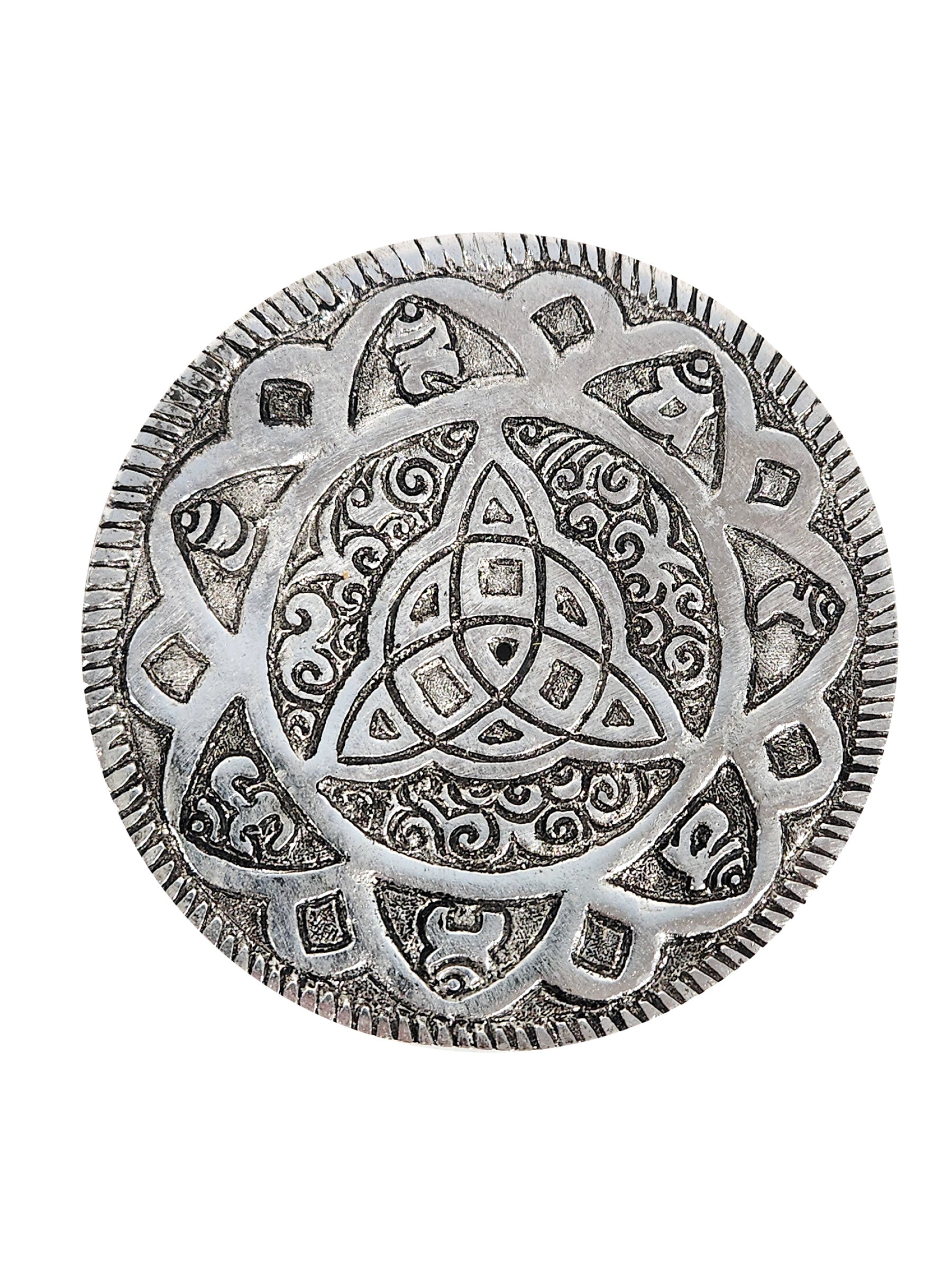 The burner showcases a beautifully carved Triquetra Celtic with an antiqued finish. This incense holder makes a thoughtful and meaningful gift option for any occasion.