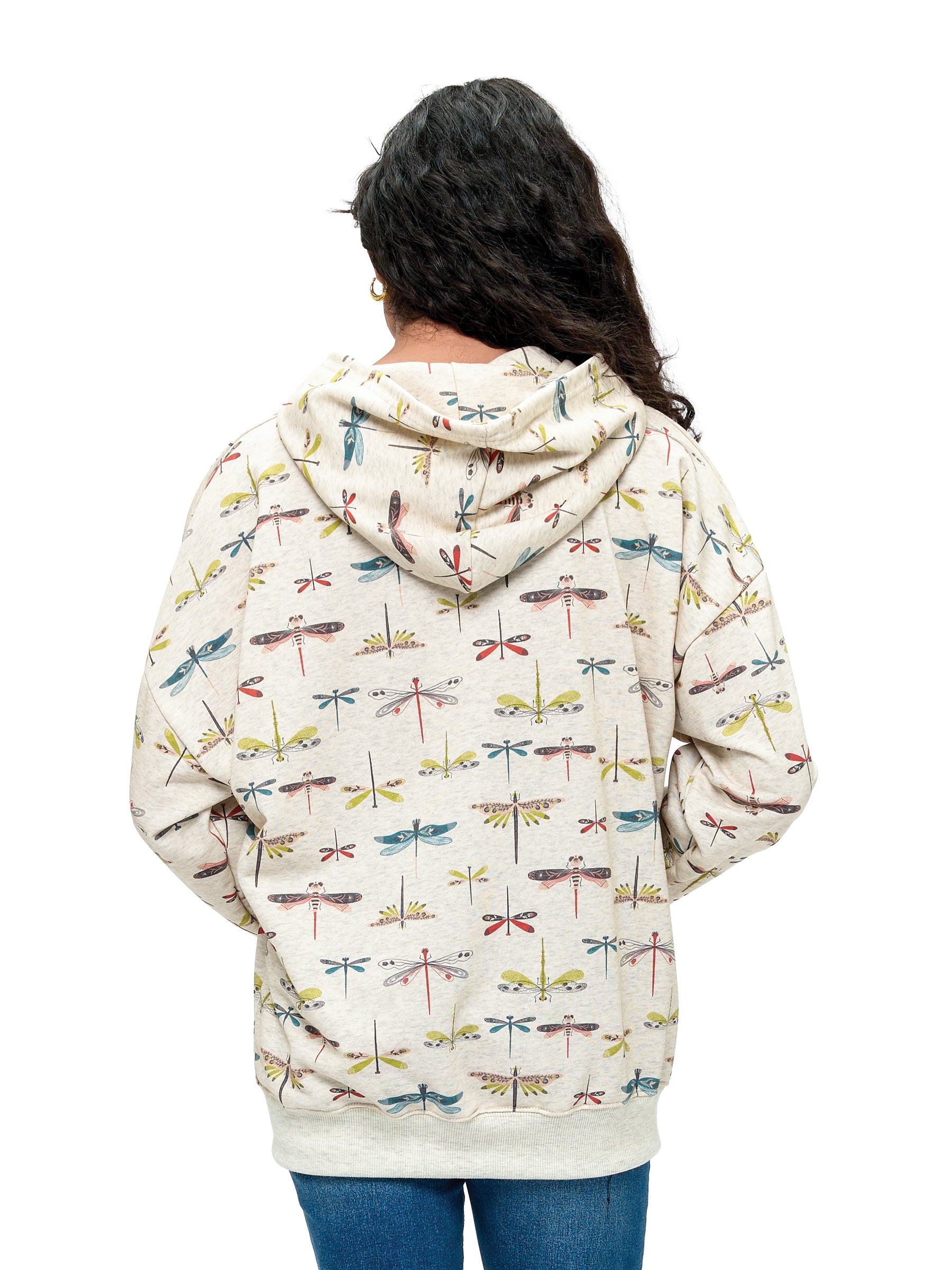Item : 25634Zip-up Hoodie Boho Dragonfly Print