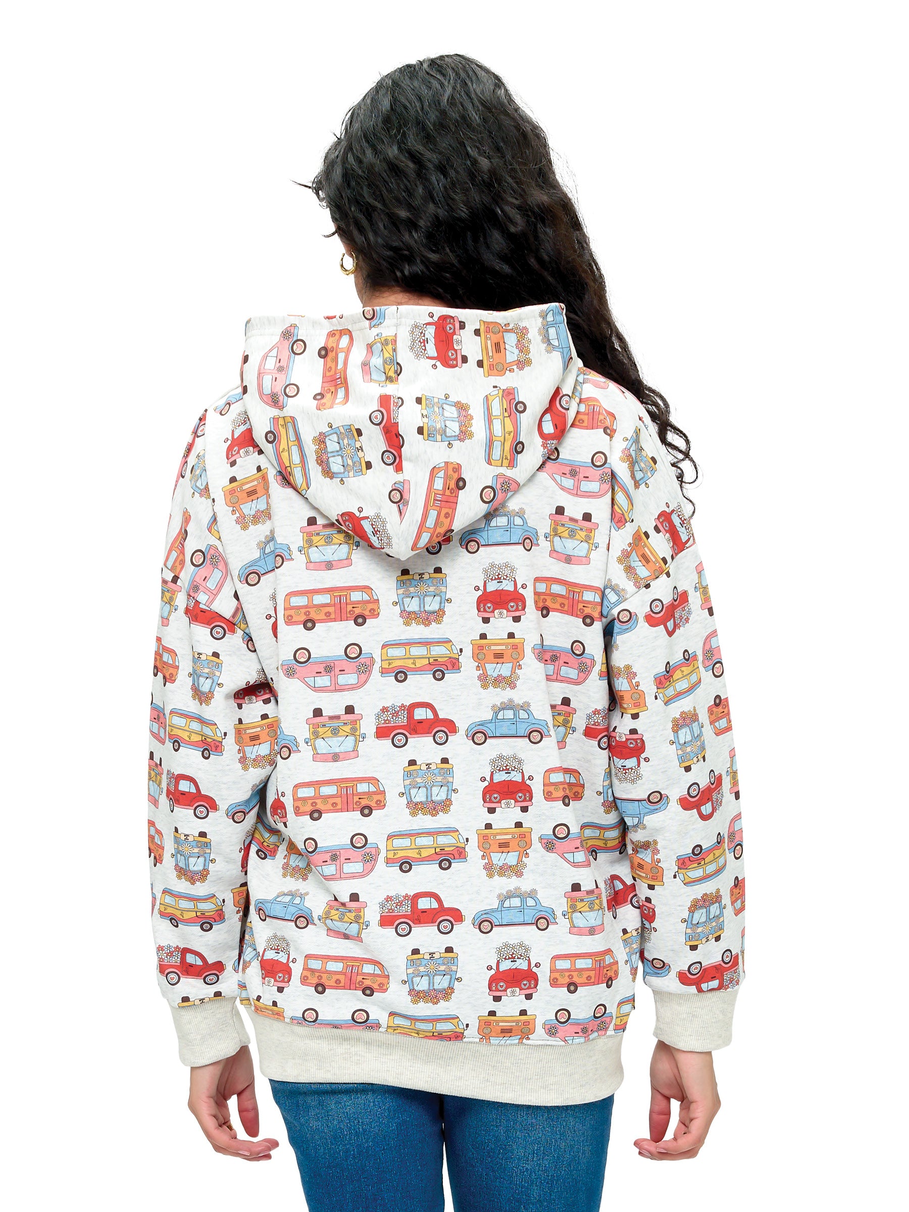 Item : 25635Zip-up Hoodie Boho Van Life Floral Print